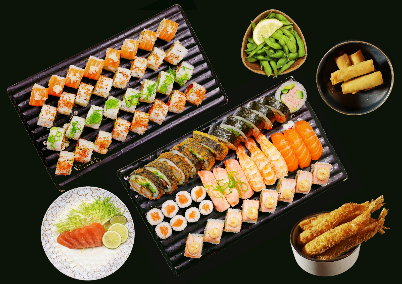 8 stk Ebi haps laks, 8 stk Hot Ebi, 8 stk Spicy Laks